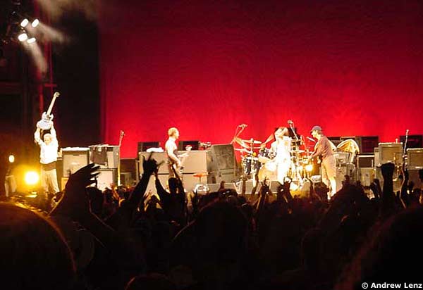 The rest of the band joined Eddie on stage after Patriot, and immediately we've been flown into overdrive with Evolution. This song is not quite as fun as it was in 98, but it's still obviously going to be a staple of setlists for years to come. The whole band just has too much fun with it, and the highlight came when someone threw a Red Sox hat onstage, Ed put it on and did the "Eddie shuffle" with it on. =)